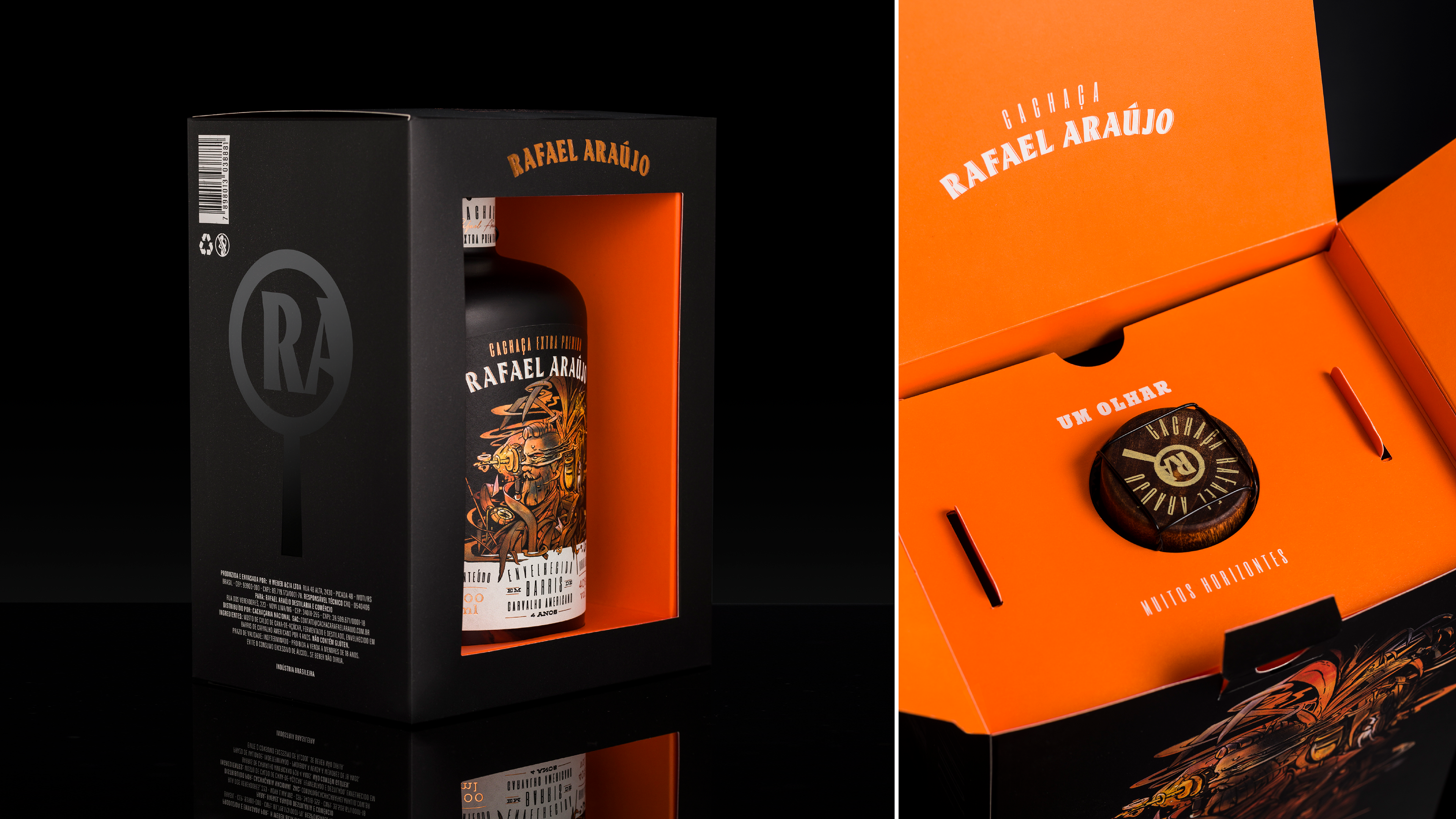 A embalagem da cachaça utiliza acabamentos e materiais conhecidos de forma criativa e pouco usual, o que a torna única. Além disso, traz inovação para o mundo da cachaça ao romper com a linguagem tradicionalista e focar no lifestyle do Rafael voltado para um público jovem, aventureiro e fã de rock.