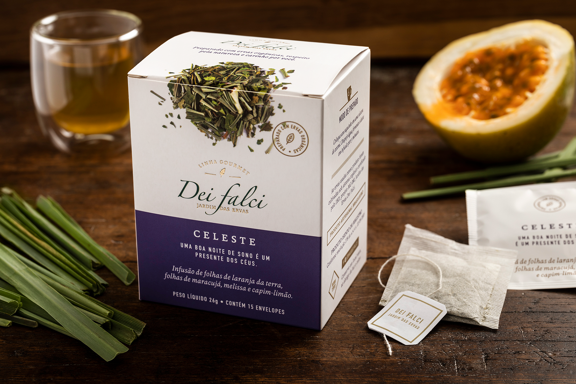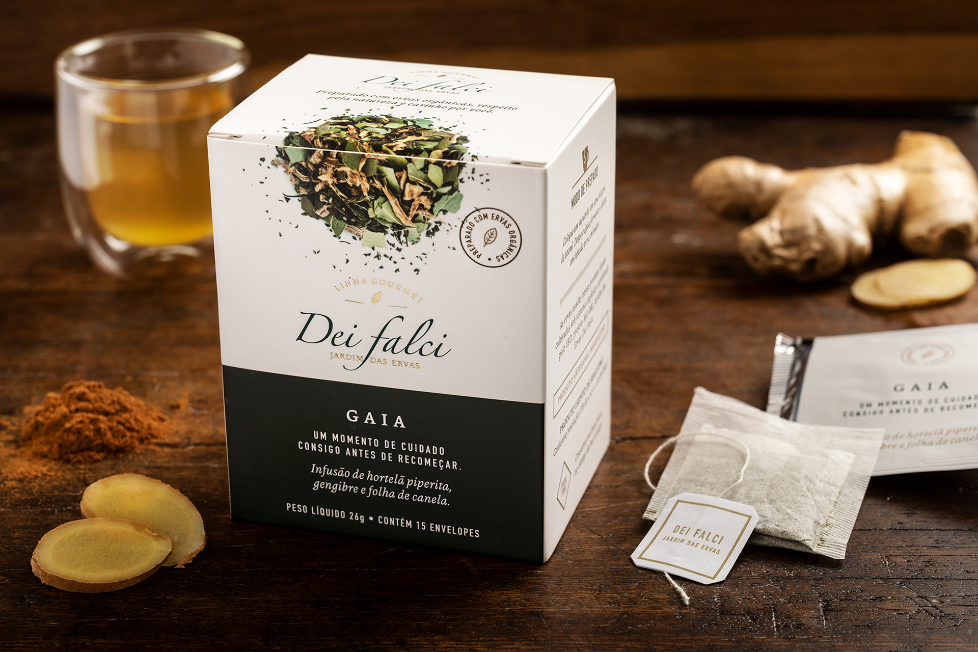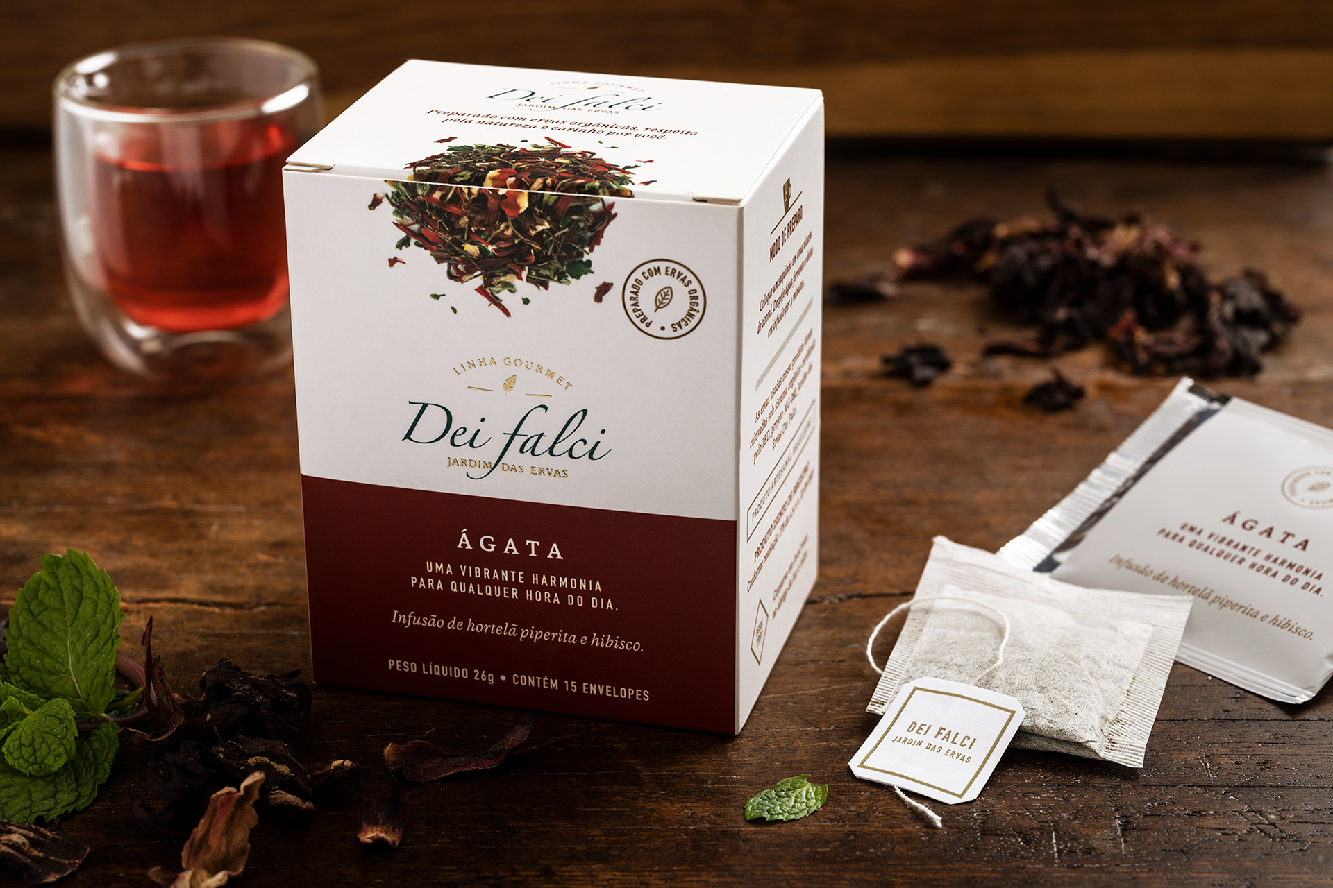 A linha de chás, inspirada em nomes femininos que trazem conforto e delicadeza, explora o branco e fotografias leves, cheias de frescor, além de grandes blocos de cor que ajudam a identificação do produto e compõe uma coleção rica e em constante crescimento. Para os temperos, tons escuros trazem elegância e sofisticação enquanto o contraste com o verde e a utilização da imagens fazem o link com o restante da linha de produtos.