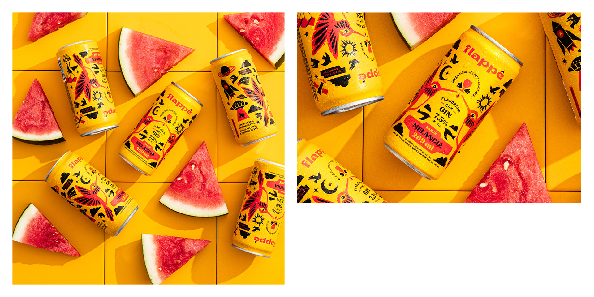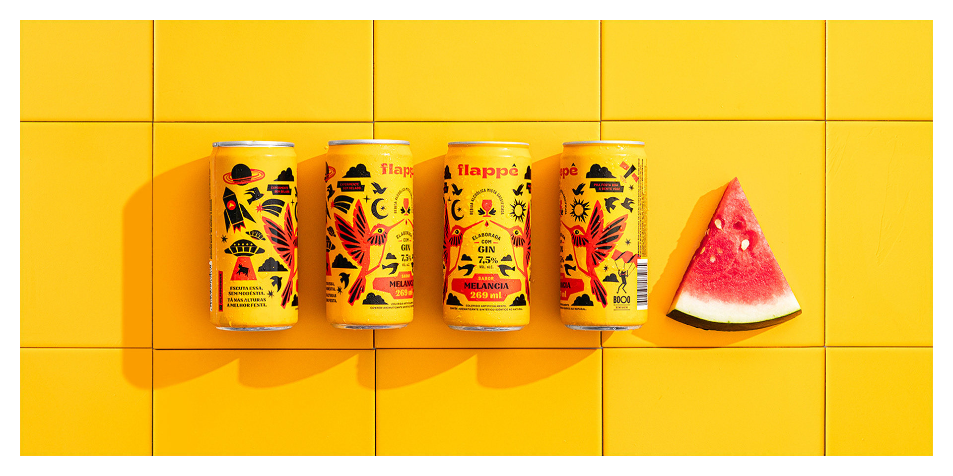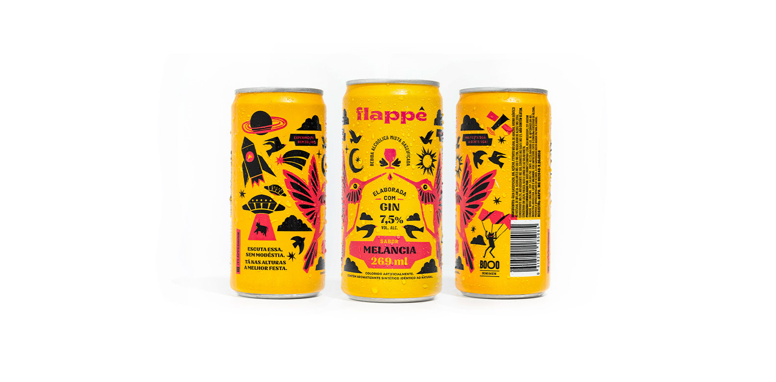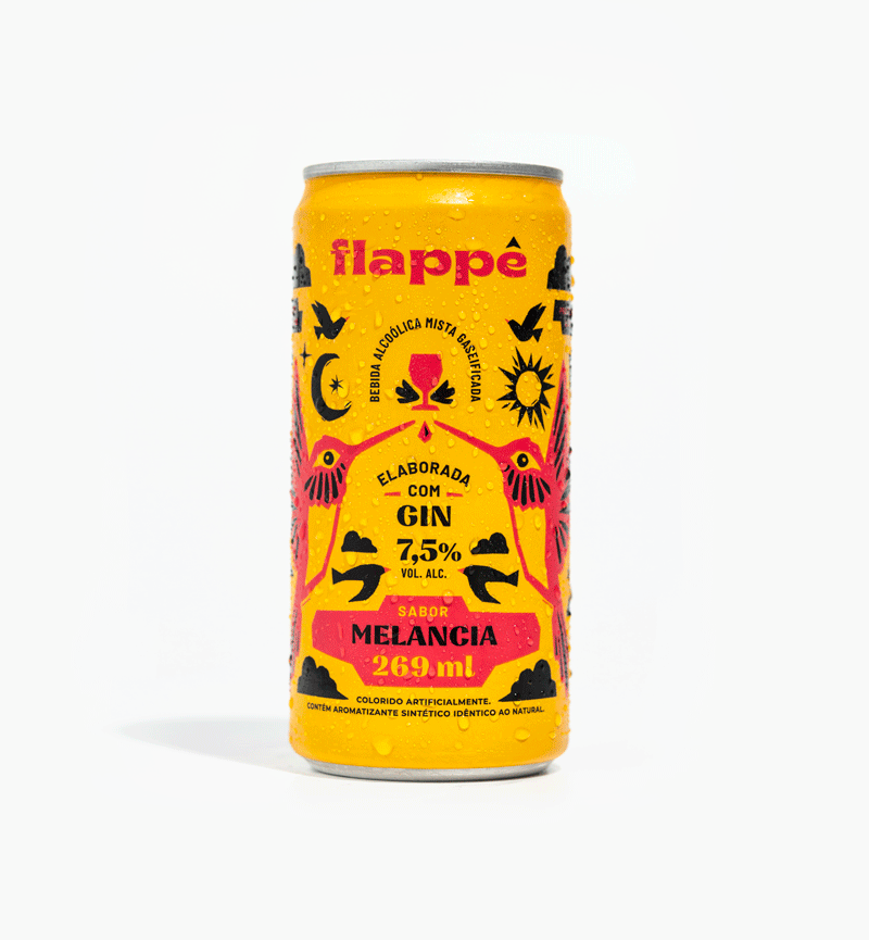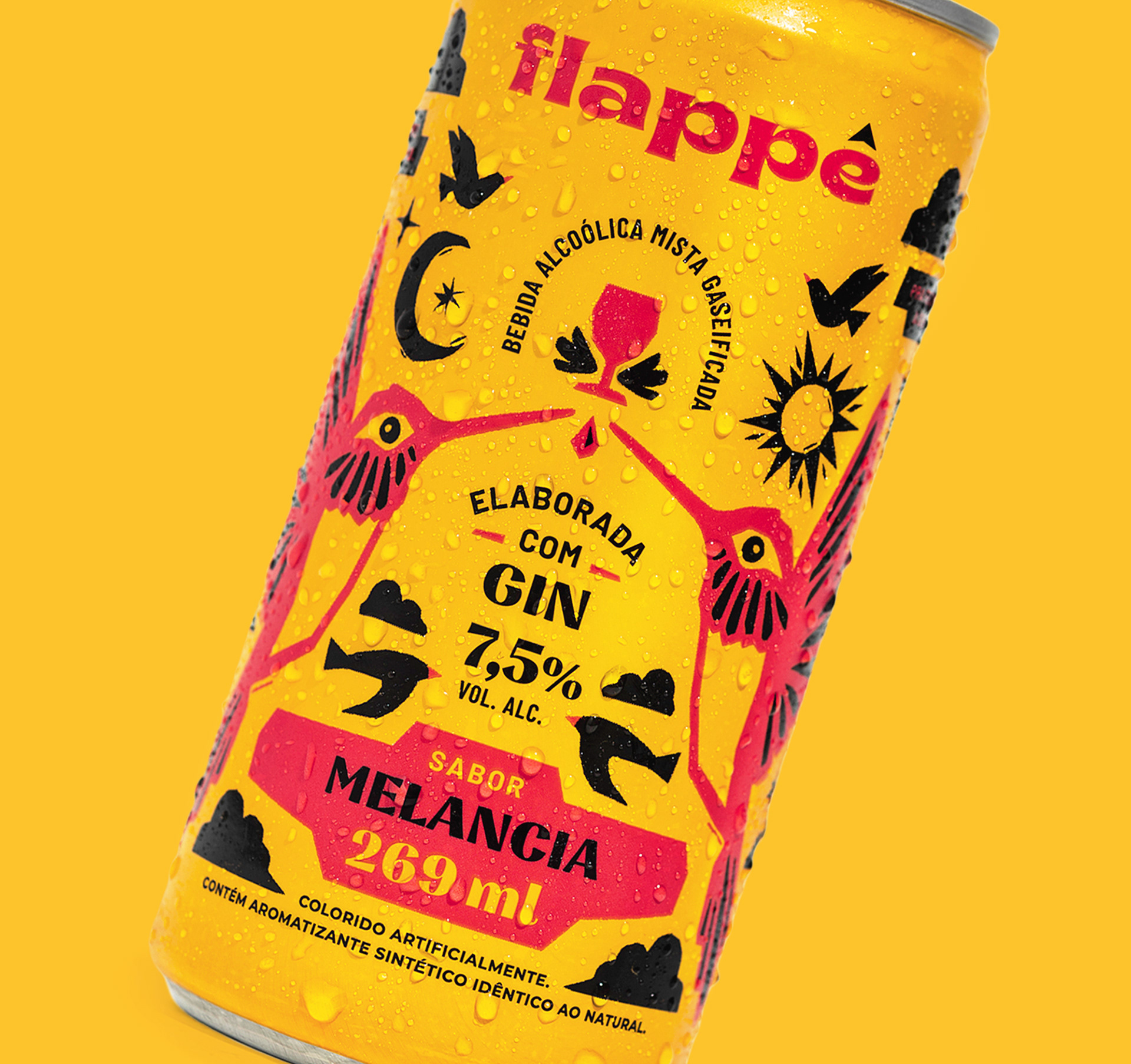 Flappê is a watermelon based drink. Full of tropical vibrancy, it is made for young consumers, looking for exciting and fun graphic design. The main element in the can is a hummingbird, an animal full of energy, gliding through the air with its 80 wing beats per second. Flappê is a sweet drink, as well as the nectar of flowers that attracts the bird.