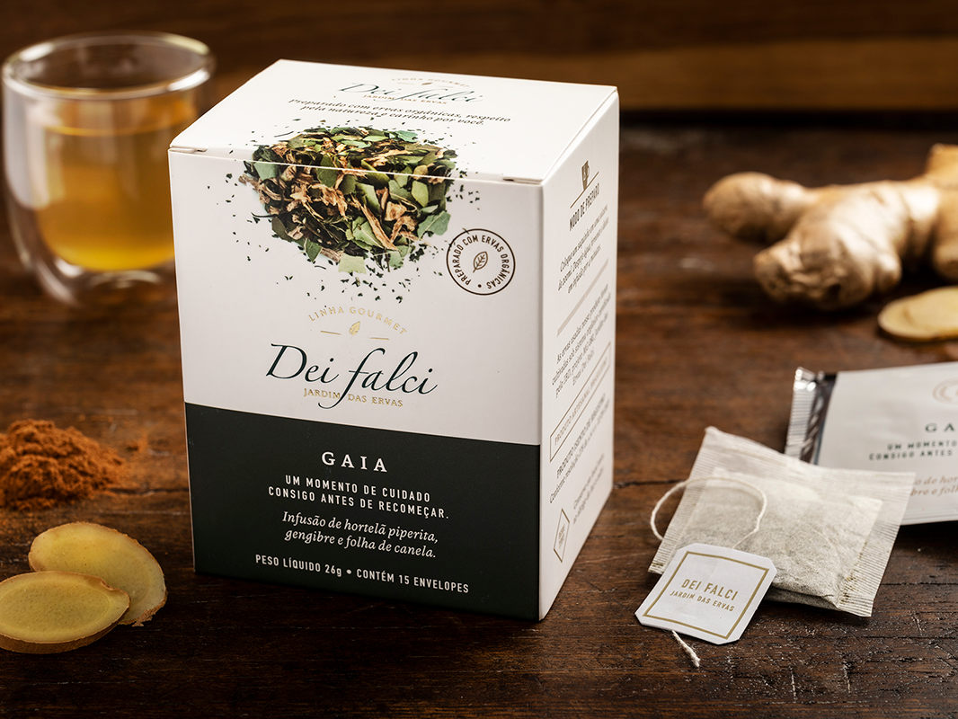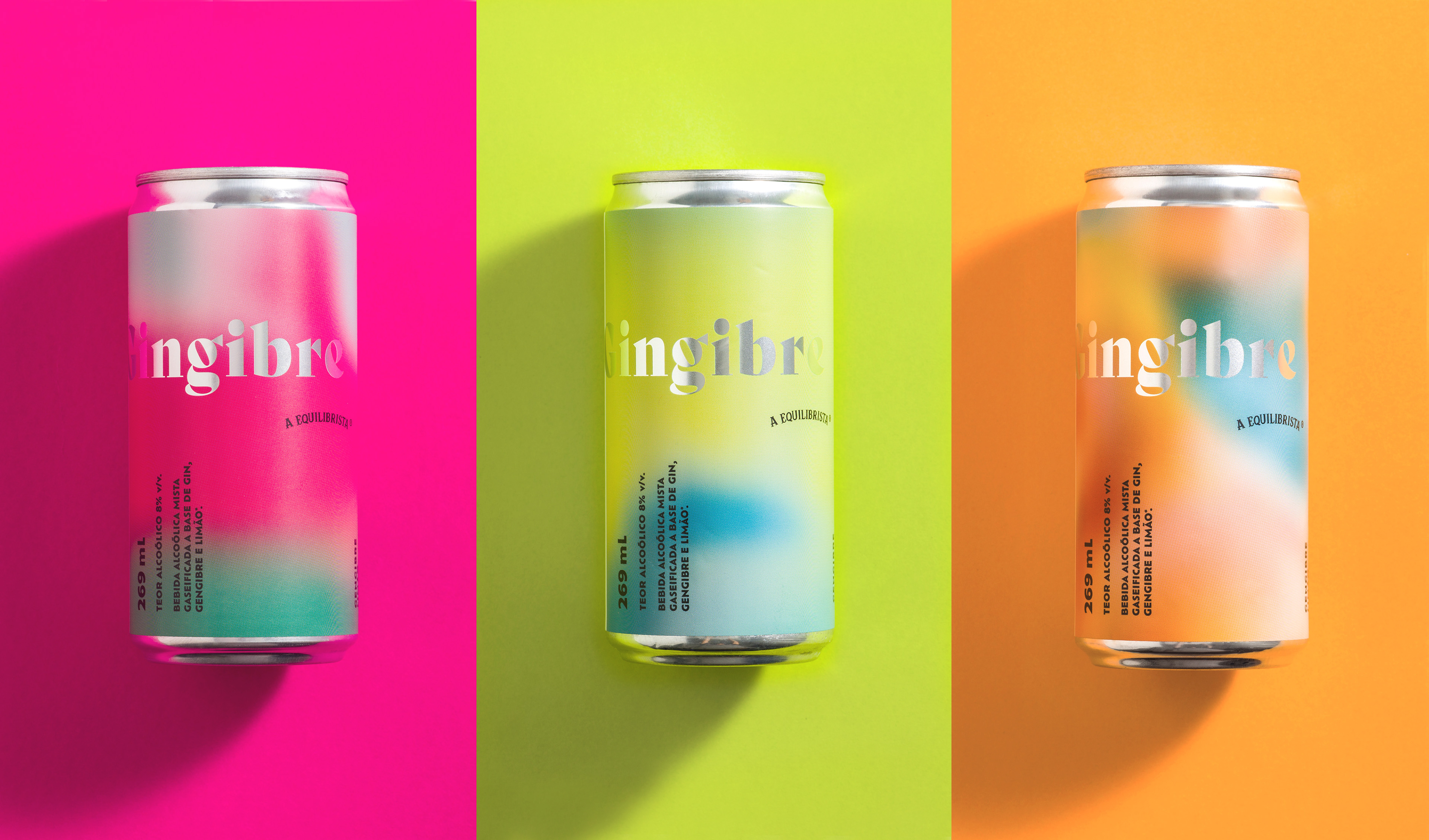 A embalagem de Gingibre possui três diferentes combinações cromáticas, sempre destemidas e ousadas.