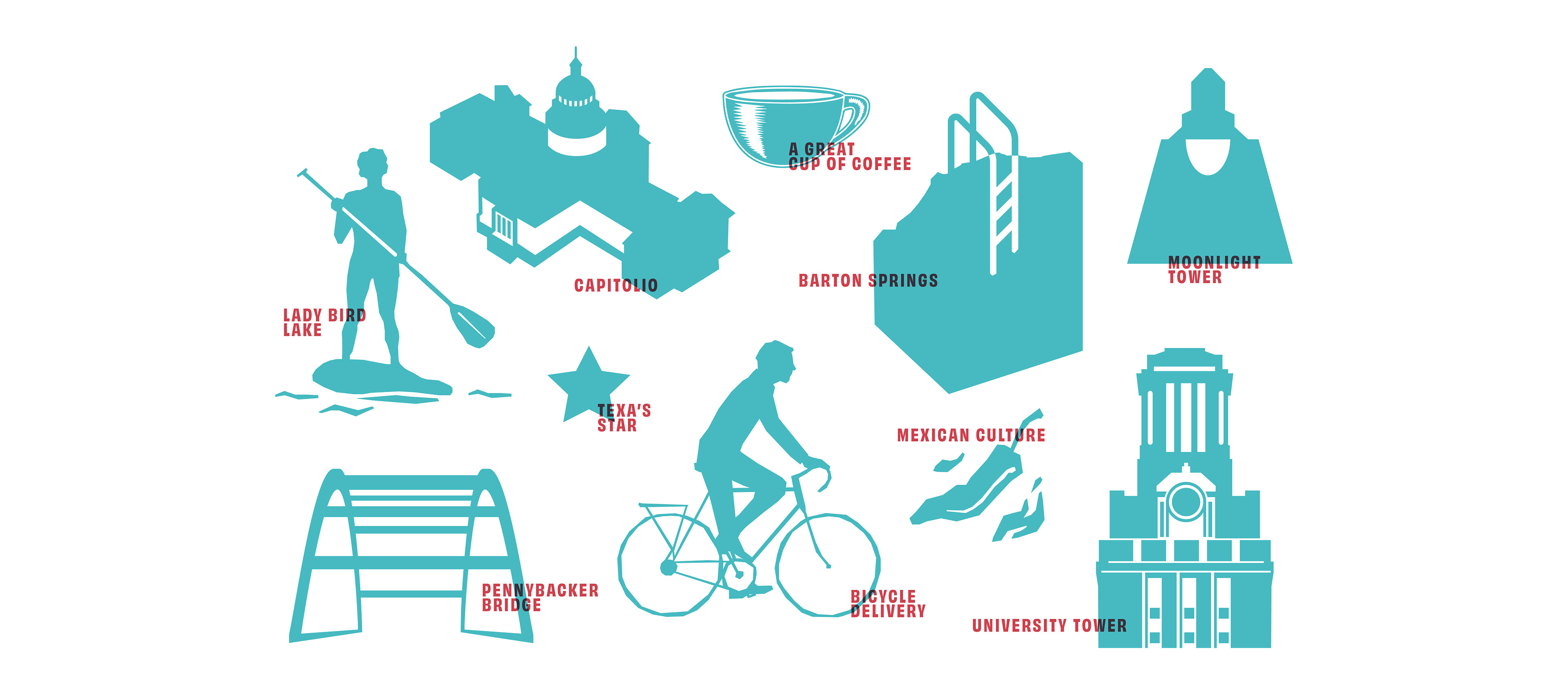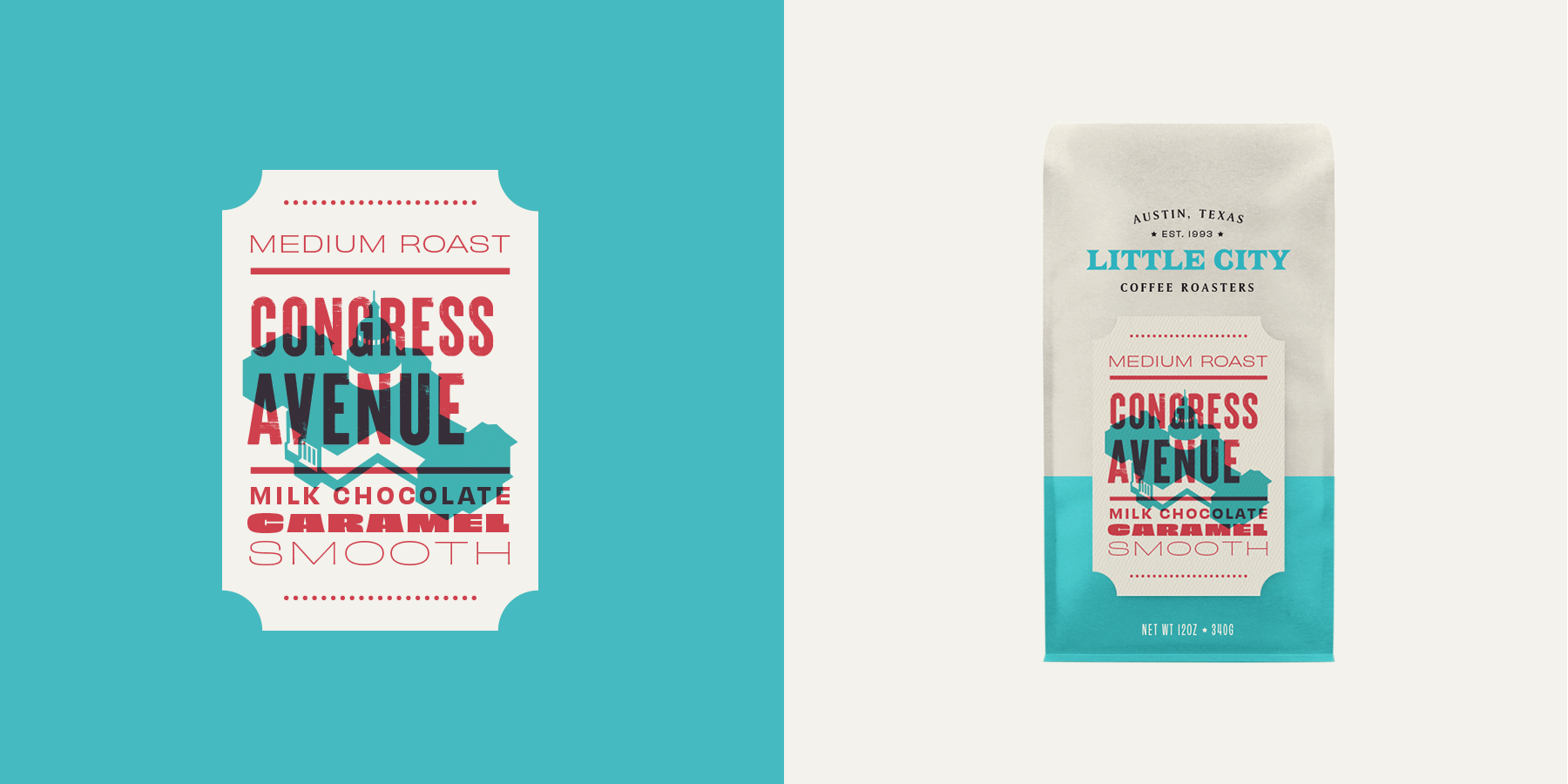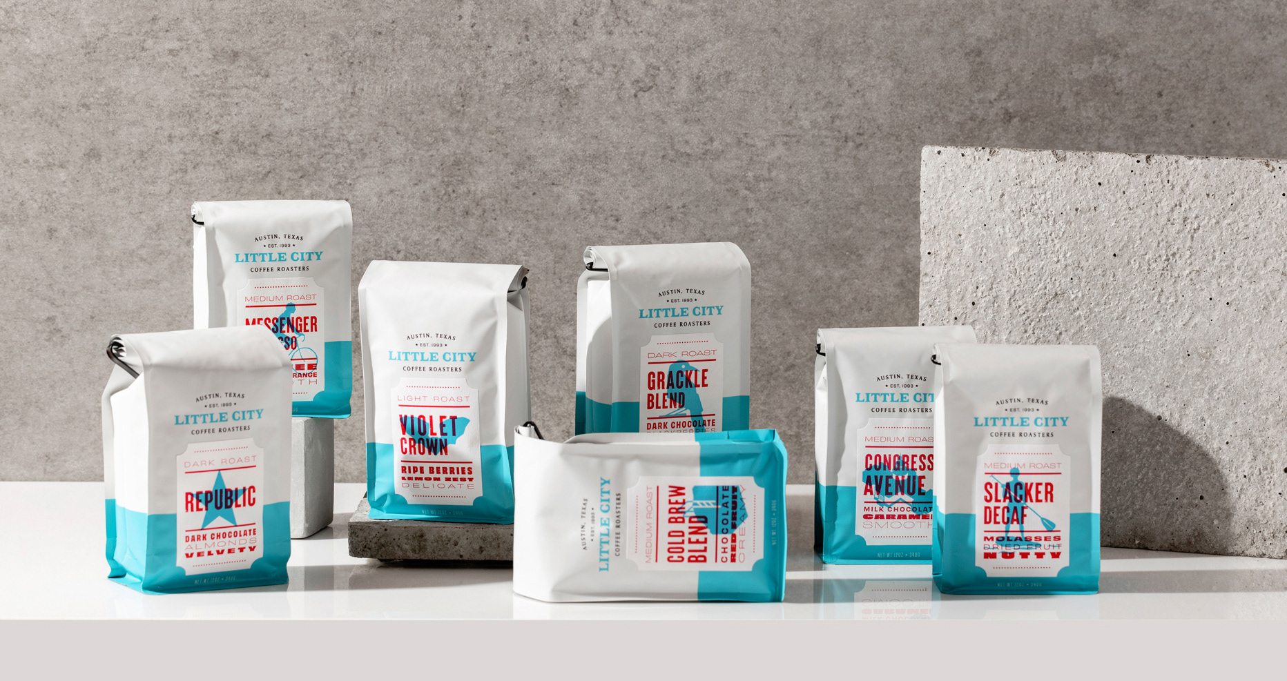 Para o redesign das embalagens Little City, foi desenvolvido um amplo repertório visual da cidade de Austin: edifícios icônicos, espaços naturais e, ainda, elementos da cultura cotidiana da cidade, como os morcegos que fazem uma revoada ao final da tarde; a forte presença da cultura mexicana; os grackles, pássaros ousados que estão por toda parte; e as Moonlight Towers, enormes pontos de luz, remanescentes dos anos 70, que brilham tão forte que se confundem com a lua.