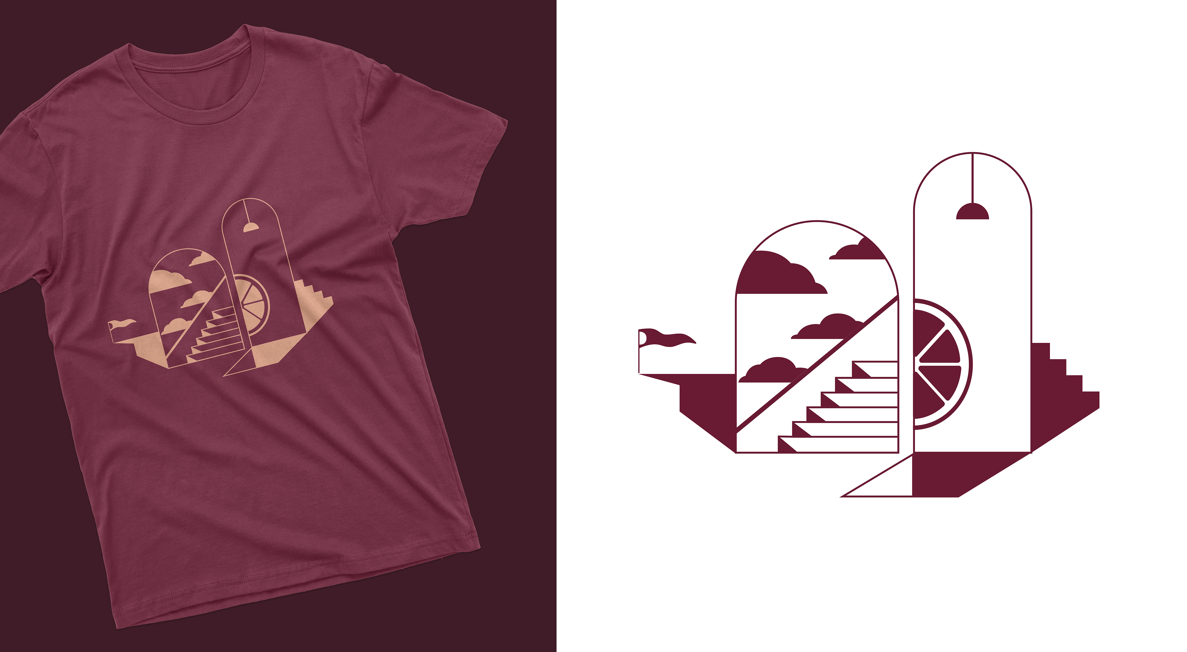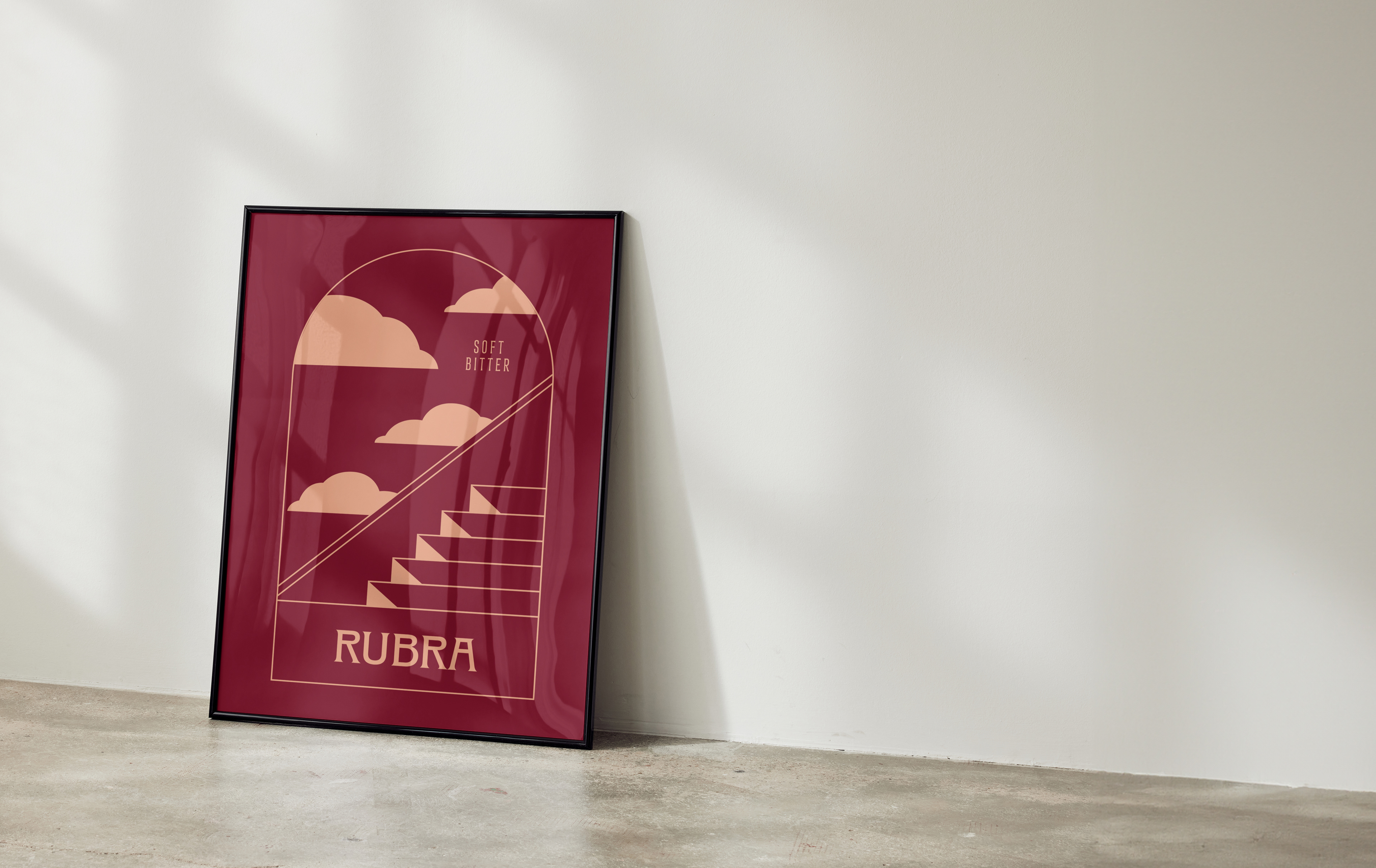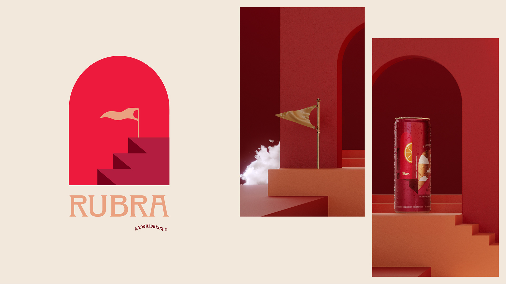 In Rubra's packaging, one can discern the influence of the works of René Magritte and Giorgio de Chirico, pillars of the surrealist movement of the early 20th century. Inspired by Chirico, we found a dreamlike landscape where reality and unreality coexist harmoniously among arches, stairs, and sharply defined shadows creating a fantastic architecture. Magritte's legacy lies in challenging our perception with different planes that cause us a certain amount of confusion, in addition to the dual notion of day and night through lighting and, simultaneously, the classic clouds of a beautiful sunny day.